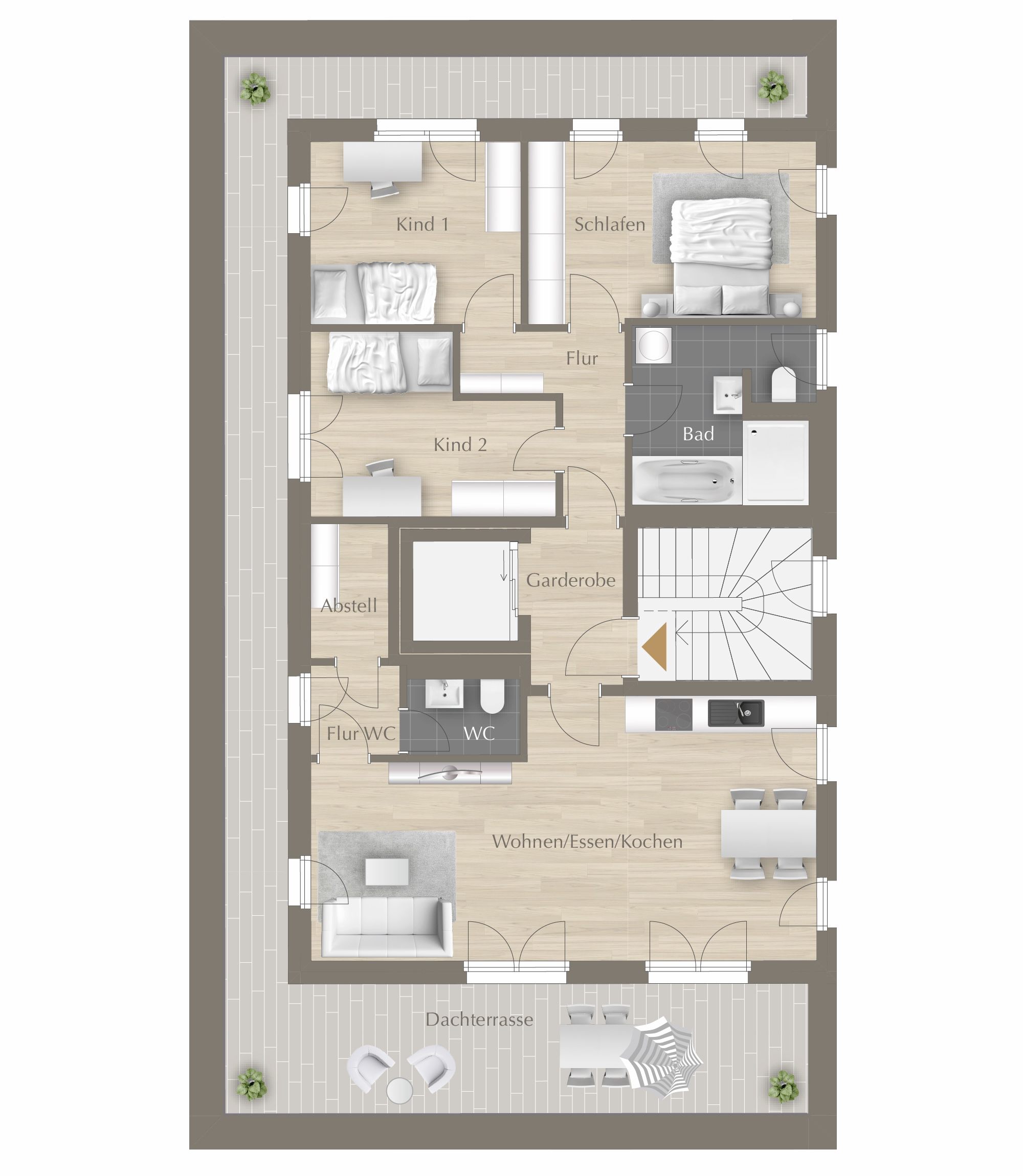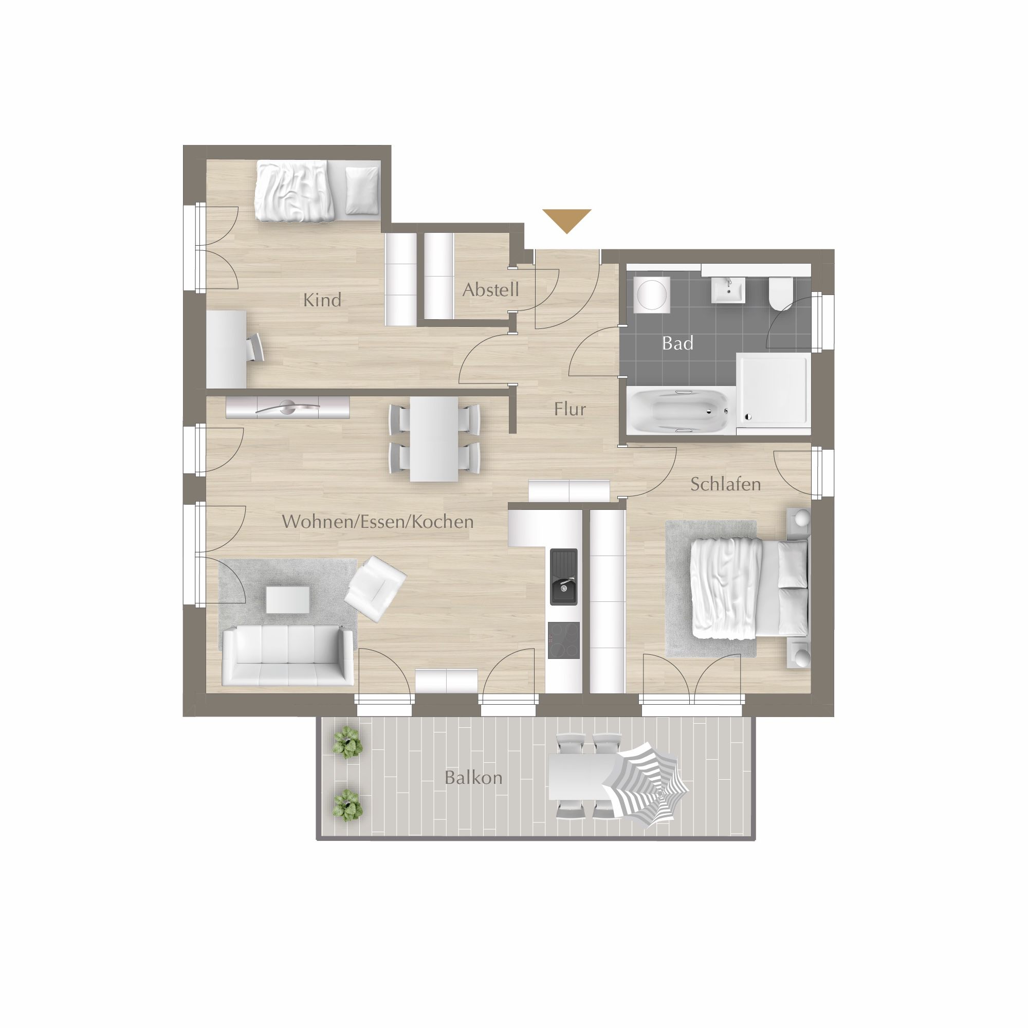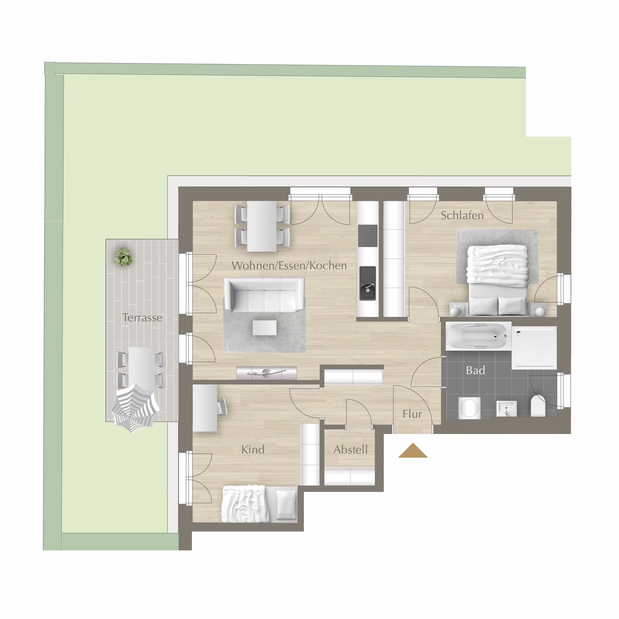Grundrisse und Visualisierungen sind nicht zur Maßentnahme geeignet. Visuelle Darstellungen können von der finalen Ausführung abweichen. Alle Angaben und Zeichnungen in diesem Prospekt entsprechen dem Planungsstand März 2022.